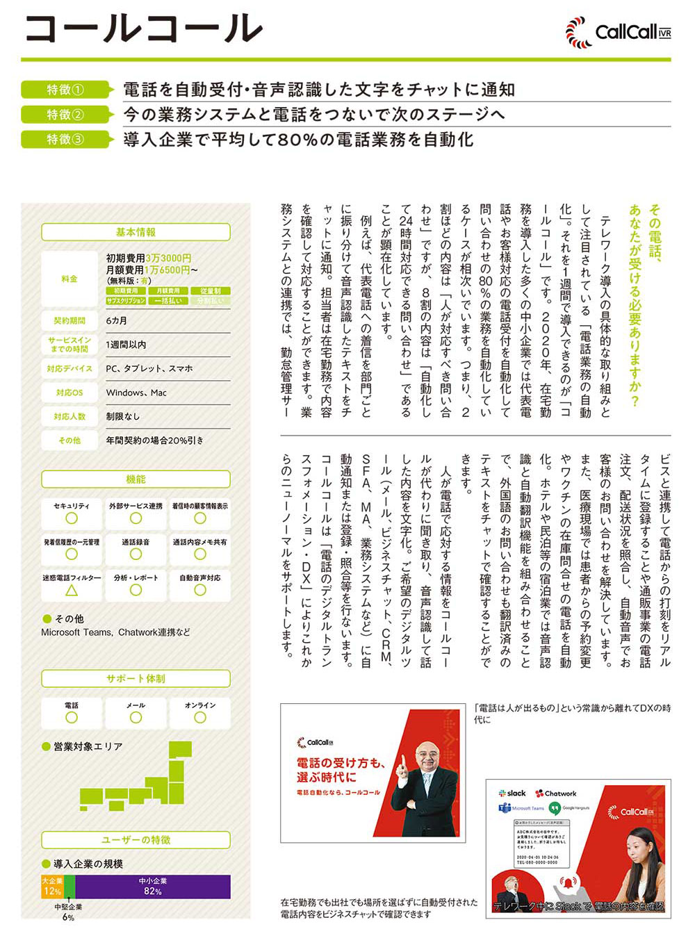 電話自動化CallCall-IVR「コールコール」が、日本経済新聞出版の『日経ムック 中堅・中小企業のためのテレワーク 成功の秘訣』に掲載されました。 トップページ ニュース・お知らせ 電話自動化CallCall-IVR「コールコール」が、日本経済新聞出版の『日経ムック 中堅・中小企業のためのテレワーク 成功の秘訣』に掲載されました。 2020.11.12 本日発売の日本経済新聞出版、『日経ムック 中堅・中小企業のためのテレワーク 成功の秘訣』の「特別カタログ テレワーク導入ガイドー9種類のお役だちサービス」に電話自動化サービスのCallCall-IVR「コールコール」が掲載されました。 [+]拡大表示 [+]拡大表示 ← ニュース・お知らせの一覧へ